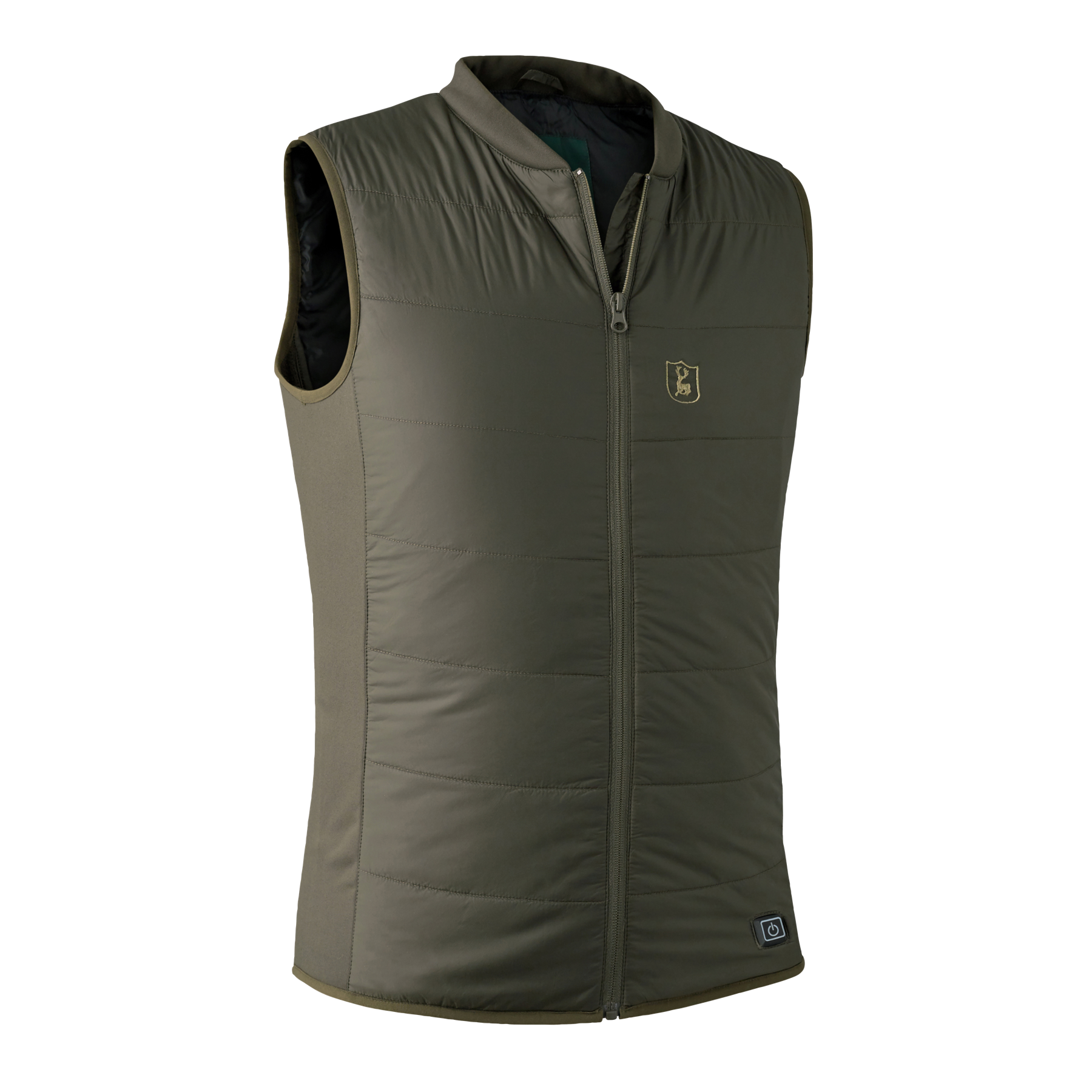 Die Deerhunter Heat Innenweste hat ein integriertes HEAT-System, das auf der linken Seite der Weste durch einfaches Drücken aktiviert wird. Der Erwärmungsgrad kann angepasst werden. Die integrierte LED zeigt dabei die drei Wärmestufen der Weste an. Die Weste hat vorne einen Reißverschluss und ist mit einer wasserabweisenden Oberflächenbehandlung veredelt. Durch ihre dehnbaren Einsätze an beiden Seiten und die schmalen, elastischen Bündchen bietet die Weste viel Bewegungsfreiheit und Komfort.