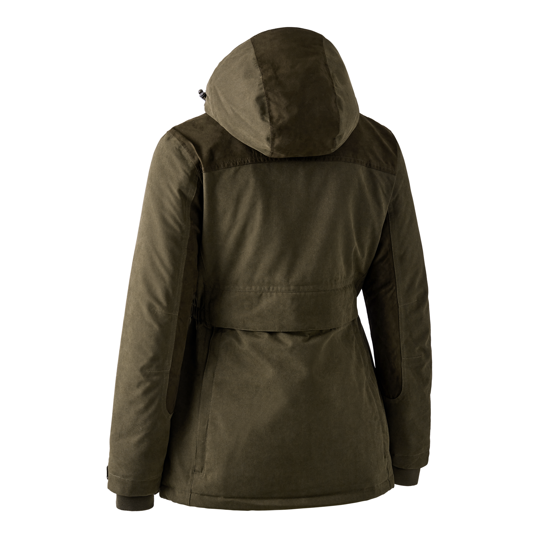 Die Lady Eagle Winterjacke wurde für kalte Witterungsbedingungen entwickelt und verbindet klassischen Jagdstil mit femininer Passform und moderner Wärmeisolierung und Funktionalität. Sie ist mit einem Mix aus atmungsaktivem Netzgewebe und gestepptem Futter isoliert und dank der Deer-Tex® Performance Shell-Membran wind- und wasserdicht, sodass der aktive Jäger bei jedem Wetter eine angenehme Temperatur erlebt. Details aus Wildlederimitat unterstreichen den klassischen Jagdstil und die abnehmbare Kapuze lässt sich individuell einstellen. Für eine schmeichelhafte Passform sorgen elastische Einsätze in der Taille. Die Jacke ist bis ins kleinste Detail durchdacht und mit funktionalen Merkmalen ausgestattet, wie z. B. einer wasserdichten, teilweise abnehmbaren und waschbaren Hasentasche, in die auch ein Sitzkissen passt, das auf dem Hochsitz vor Kälte schützt. Die Napoleontasche ist nicht nur praktisch, da man dort alle wichtigen Utensilien griffbereit hat, die beiden Handwärmertaschen sind zudem leicht zugänglich und schützen in Ruhepositionen die Hände vor Kälte. Hinzu kommen eine Reihe weiterer praktischer Details wie eine Funkgerätetasche mit Schlaufe für die Antenne, zwei geräumige Taschen mit Taschenklappe für leichten Zugriff auf der Vorderseite und mehrere Innen- und Außentaschen mit Reißverschluss. So können Jagdutensilien während der Jagd bequem verstaut werden. Die Lady Eagle Winterjacke bietet außergewöhnlichen Komfort und Vielseitigkeit für Aktivitäten bei kaltem Wetter und verbindet Funktionalität mit klassischem Stil und einer femininen Passform.