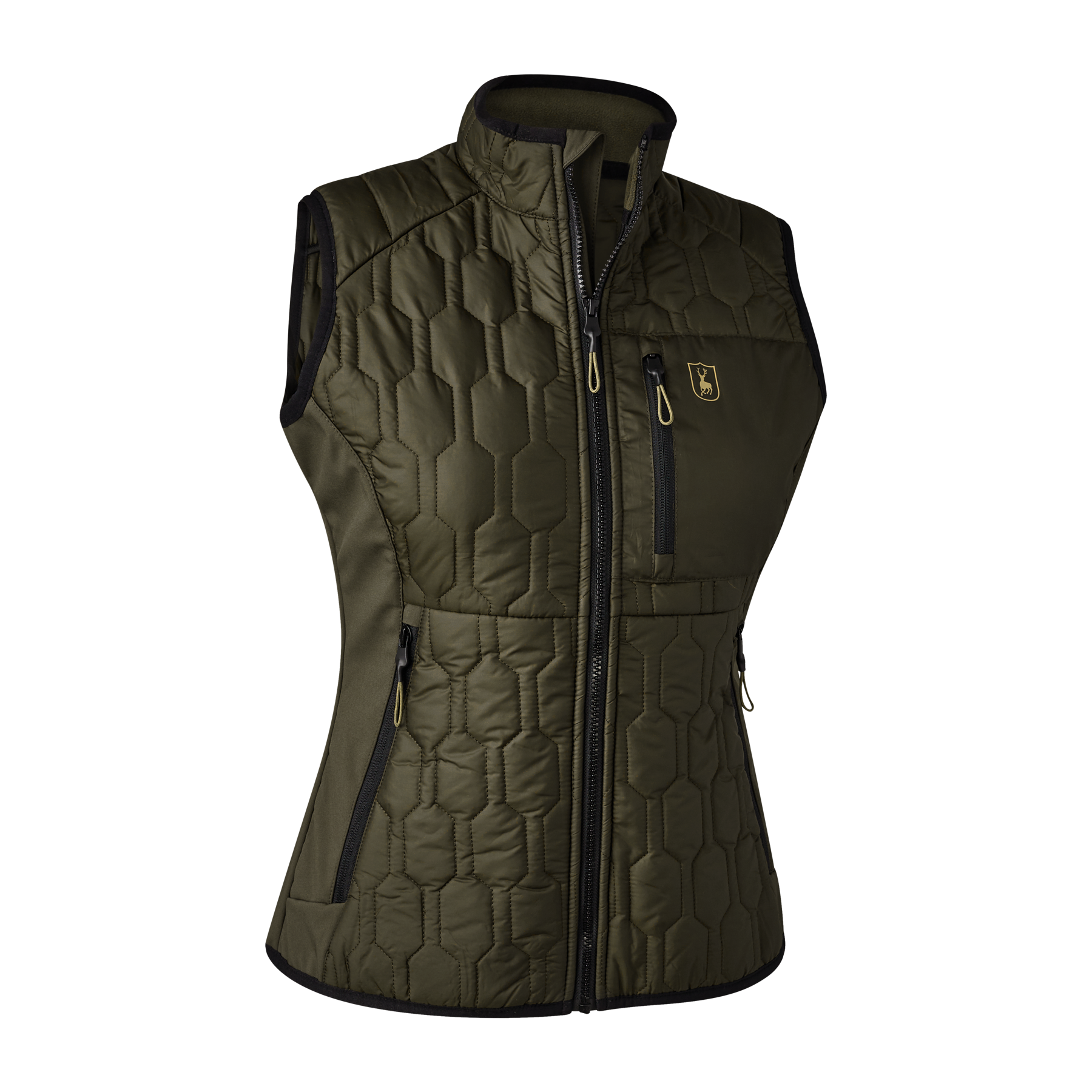 A modern take on the classic quilted waistcoat, the Deerhunter Lady Mossdale Quilted Waistcoat features a striking pattern in quilted and softshell fabric, with regenerated polyester, for maximum comfort and warmth. This water repellent, insulated waistcoat is made for outdoor endeavours or everyday adventures. With ample pockets for day-to-day wear, it is as practical as it is stylish.